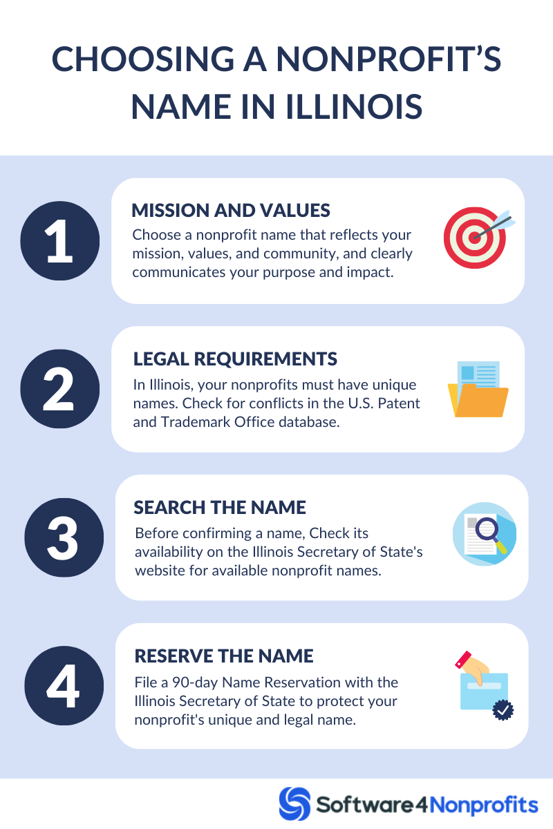When starting a nonprofit organization, choosing the right name is a critical first step. The name of your nonprofit carries considerable weight. It represents your mission, becomes part of your brand, and communicates your purpose to the stakeholders. In Illinois, the process of selecting and securing a name for your nonprofit involves several key steps.